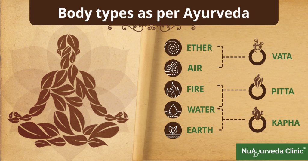 All these merge within the body to create three life factors or energies, known as doshas. They influence the way the human body works. They are Vata dosha (space and air-flow); Pitta dosha (fire and normal water); and Kapha dosha (drinking water and earth).
